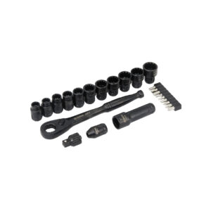 É comercializado como um jogo de 24 peças com chaves universais, bits, adaptadores e uma roquete Pass-Thru.